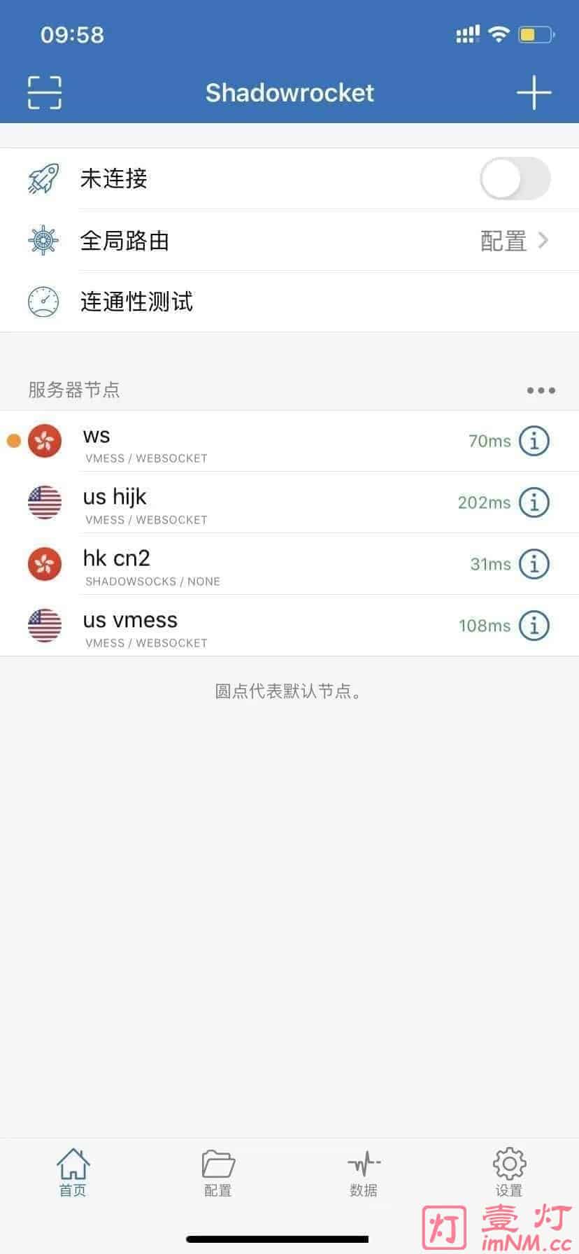 Shadowrocket主界面最下面“设置”功能项中的两个设置项不再介绍,因为这属于“小白用不上,老手自然会用”的功能。