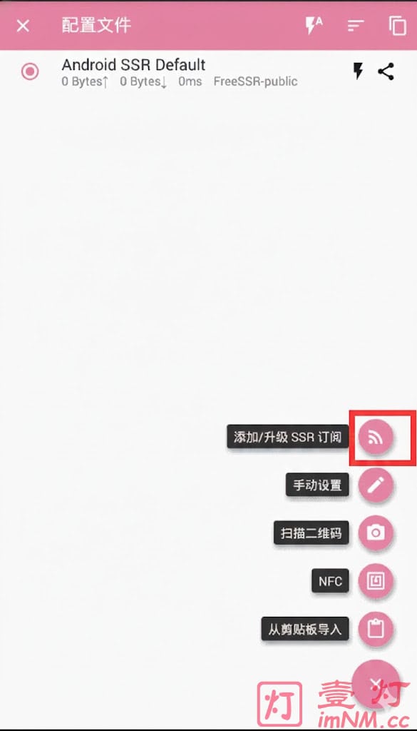 (4)点击右下角「 + 」弹出菜单,然后点击「添加/升级 SSR 订阅」。如下图所示: