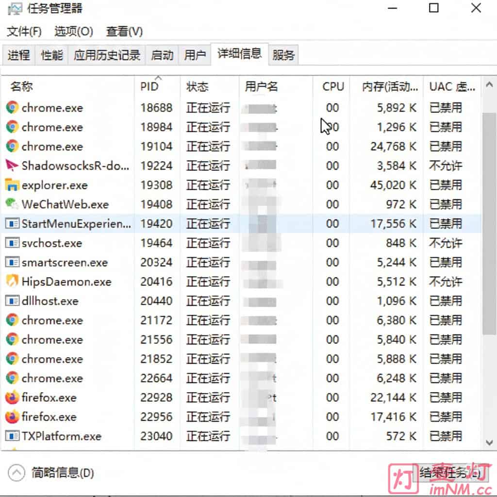 在“任务管理器”选中占用1080端口的程序,然后点击“结束任务”关闭程序,最后重新运行 ShadowsocksR 程序即可。至此,“端口已被占用”的问题得到完美解决。