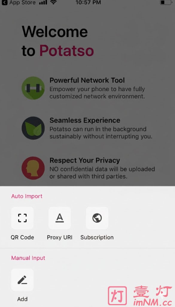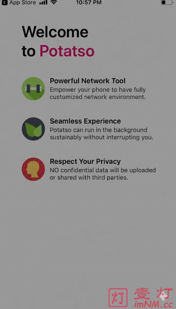 按照正常安装苹果手机APP流程完成Potatso Lite安装,然后打开Potatso Lite,如下图所示: