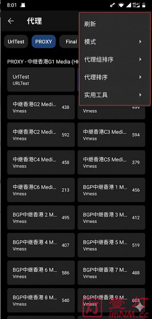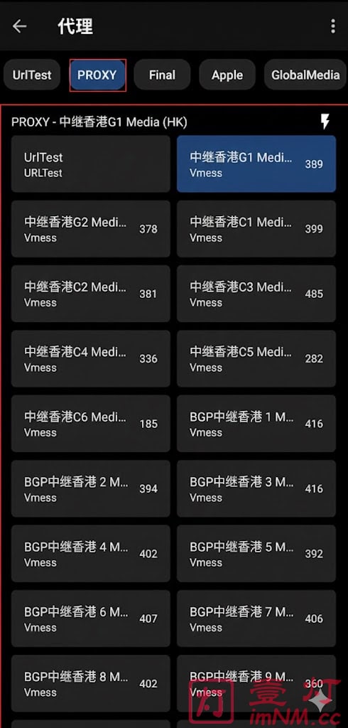 点击「代理」进入策略组选项,在「PROXY」策略组内可以切换节点(下方图2)。