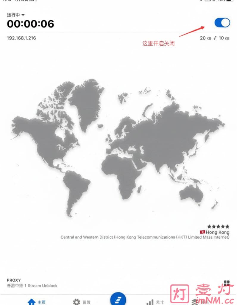 此时分流规则策略和节点全部导入完毕,回到主页点击名为 「节点」的策略组后在下方选择你需要使用的节点,最后开启右上角的开关即可使用。(首次使用开启时可能会提示需要激活VPN,需选择允许)